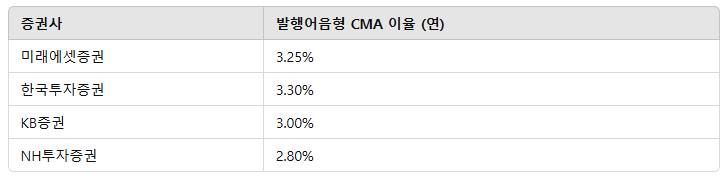 각 증권사별 발행어음 및 CMA 이율 (2024년 기준)