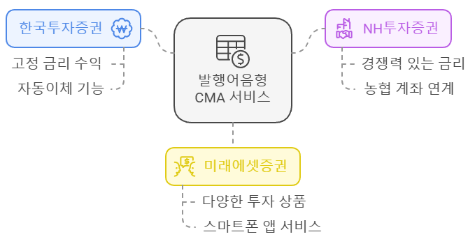 발행어음형 CMA 통장은 한국투자증권, NH투자증권, 미래에셋증권과 같은 대형 증권사에서 개설할 수 있습니다.