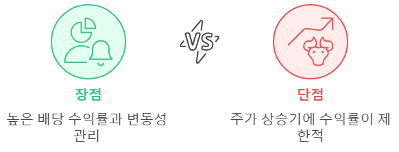 - 커버드콜 전략을 사용하는 만큼, 변동성이 낮은 시장 환경에서 좋은 성과를 낼 수 있습니다.