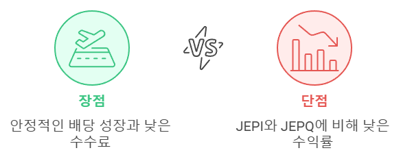 - 배당 수익률이 낮음 (JEPI, JEPQ에 비해)