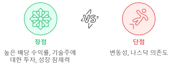 - 기술주 중심의 성장 잠재력이 높기 때문에, 나스닥 지수가 상승하면 큰 수익을 기대할 수 있습니다.