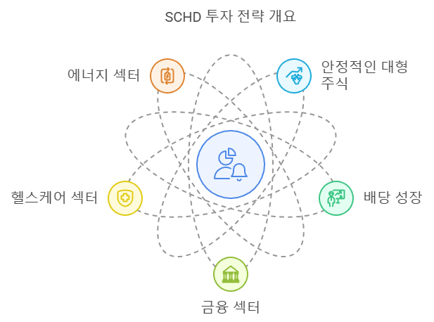 - SCHD는 미국의 대표적인 배당주 ETF로, 안정적인 대형 배당주에 투자합니다.