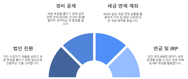업무 관련 경비(임대료, 인건비, 차량 유지비 등)를 철저히 관리하여 세금을 줄이세요.