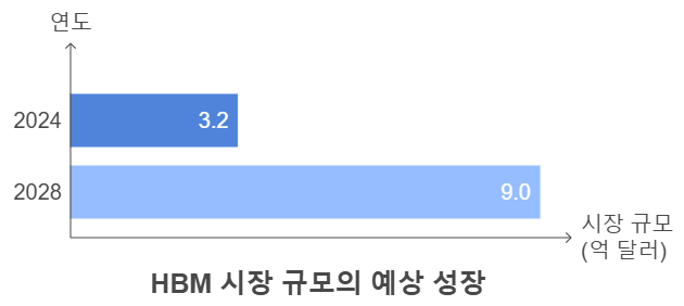 - 📊 HBM 시장 규모: 2024년 약 32억 달러에서 2028년까지 90억 달러 이상으로 성장할 것으로 전망됩니다.