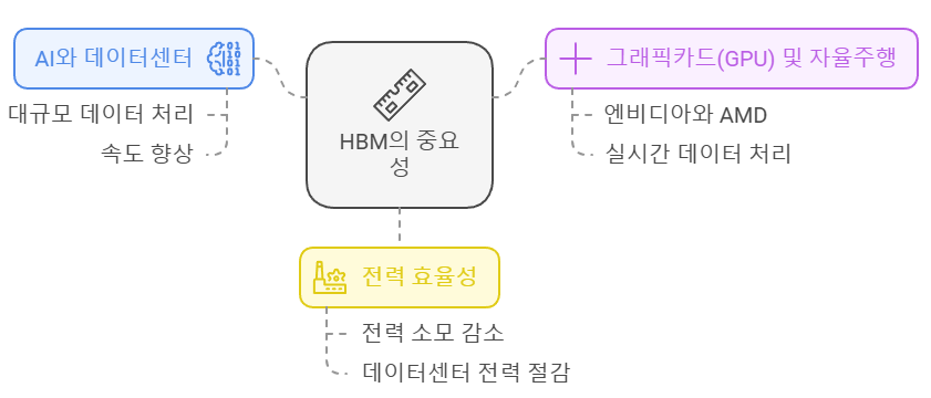 HBM이 중요한 이유는 AI와 고성능 컴퓨팅(HPC) 분야에서 필수적인 메모리 기술이기 때문입니다.